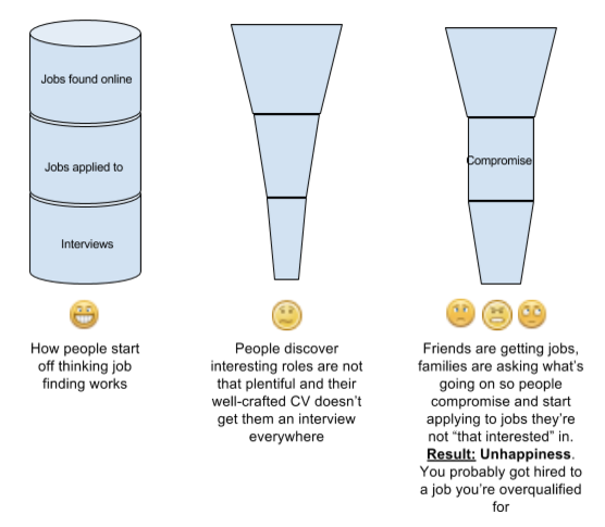 Finding a job is a funnel but by the time most people find that out, they’re panicking and compromising the jobs they’re applying to.